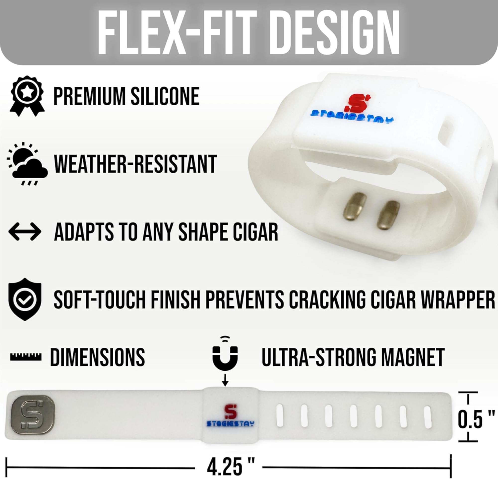 - PERMANENT EMBEDDED MAGNET THAT WILL NOT FALL OUT – Unlike competitors that glue magnets in, the StogieStay's magnet is built into the silicone body permanently. It grips securely at any angle — sideways, upside down, on any iron or steel surface. Perfect for golf carts, grills, boats, and any metal surface outdoors.